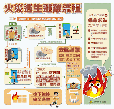 如何逃生可以參考以下這張精准扼要的逃生避難流程圖